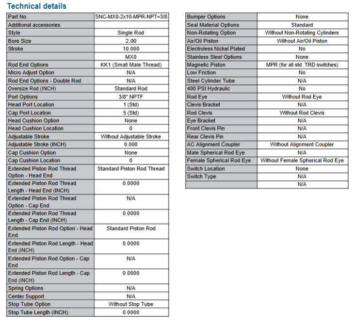 250 PSI NFPA Series Pneumatic Cylinder - Part# SNC-MX0-2X10-MPR-NPT=3/8