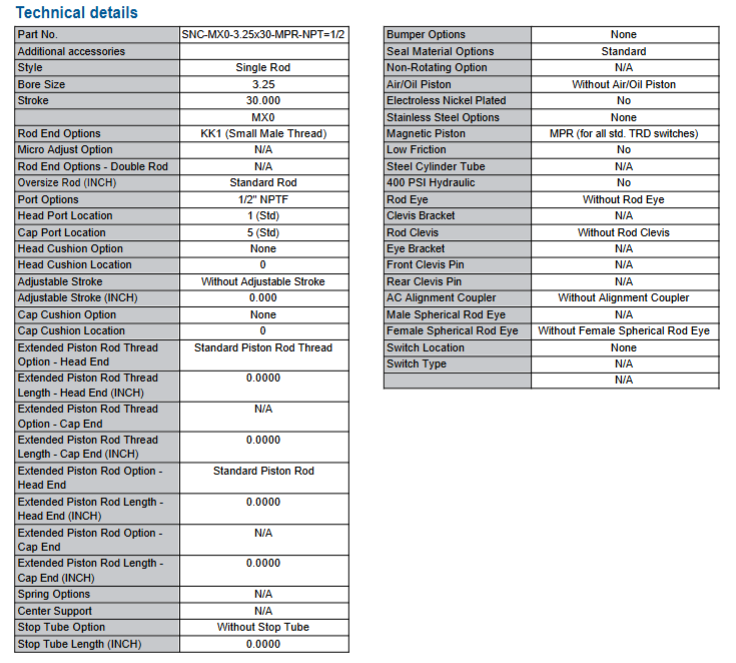 250 PSI NFPA Series Pneumatic Cylinder - Part# SNC-MX0-3.25X30-MPR-NPT=1/2